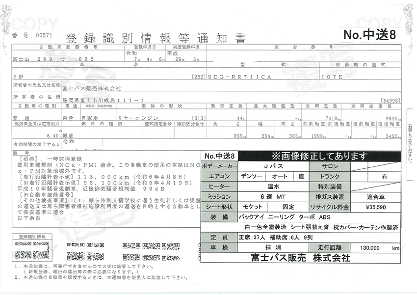 ※車検証クリックで拡大表示します